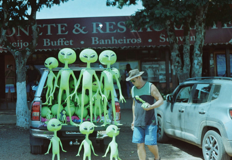 The UFO spectacle sits alongside the manifestation of a hallow yet distinctly visual consumer culture acquiring the dimensions of an alternative reality and reflecting the breakdown of the distinction between what was once – the visible and the invisible, the material and the spiritual, the irreverent and the sacred, the phenomenal and the noumenal.