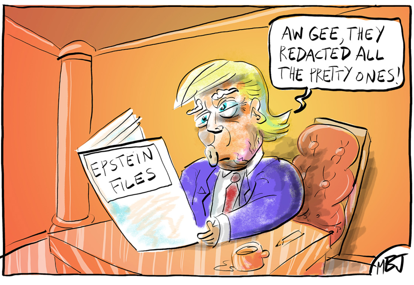Art, Humour & Poetry MBJ’s view 15/02/2026 By Matt Bissett-Johnson 15 Feb See current affairs through the eyes of cartoonist Matt Bissett-Johnson. Published 15 February 2026.
